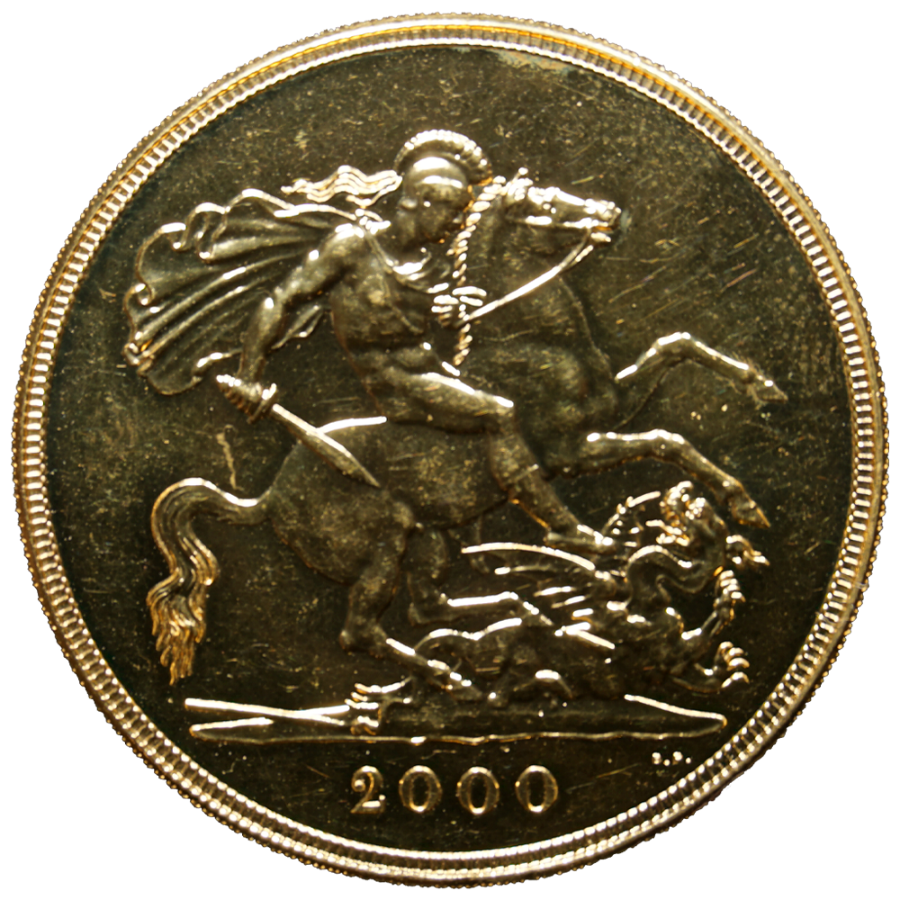 Moeda de ouro original do Reino Unido datada do ano de 2000.