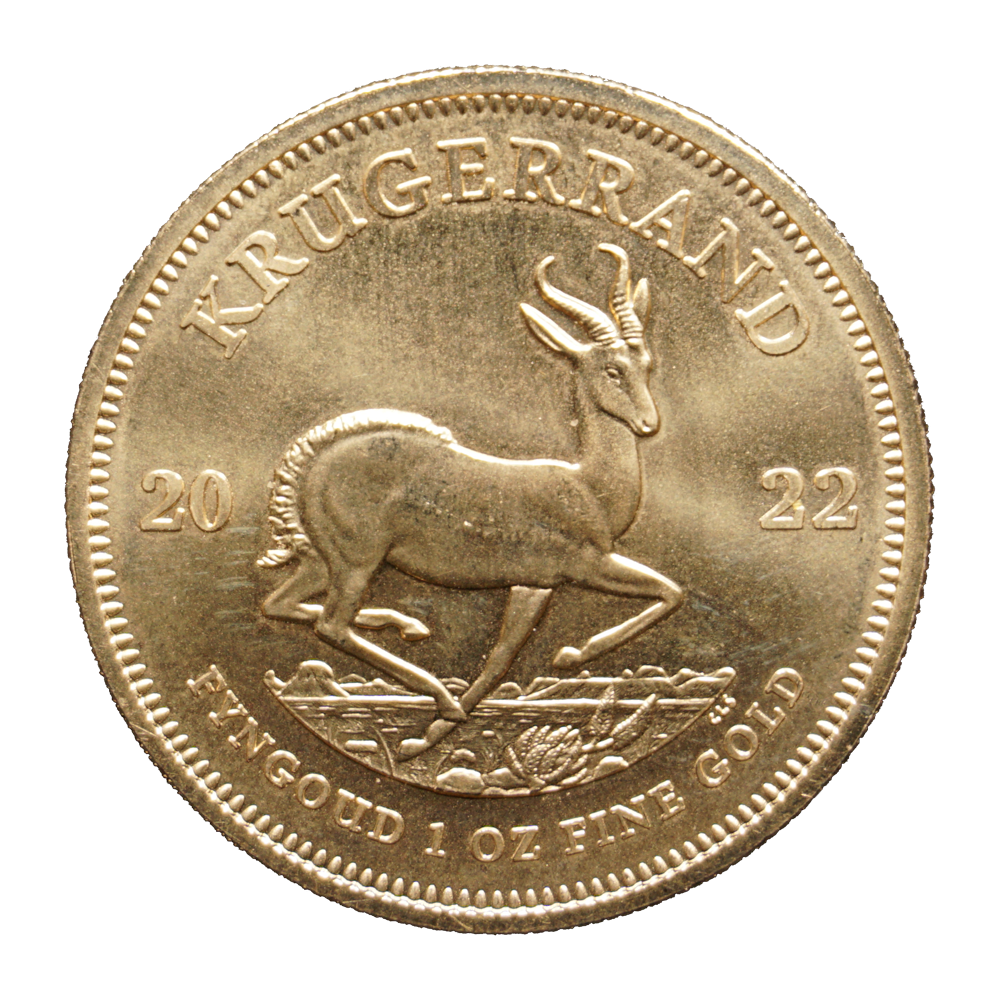 Moeda de ouro original da África do Sul datada do ano de 2022.