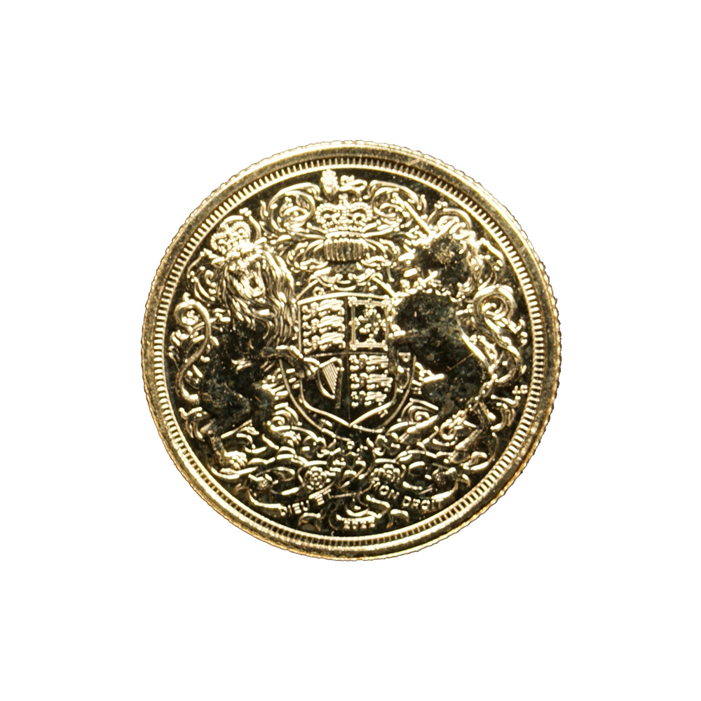 Moeda de ouro original do Reino Unido datada do ano de 2022.