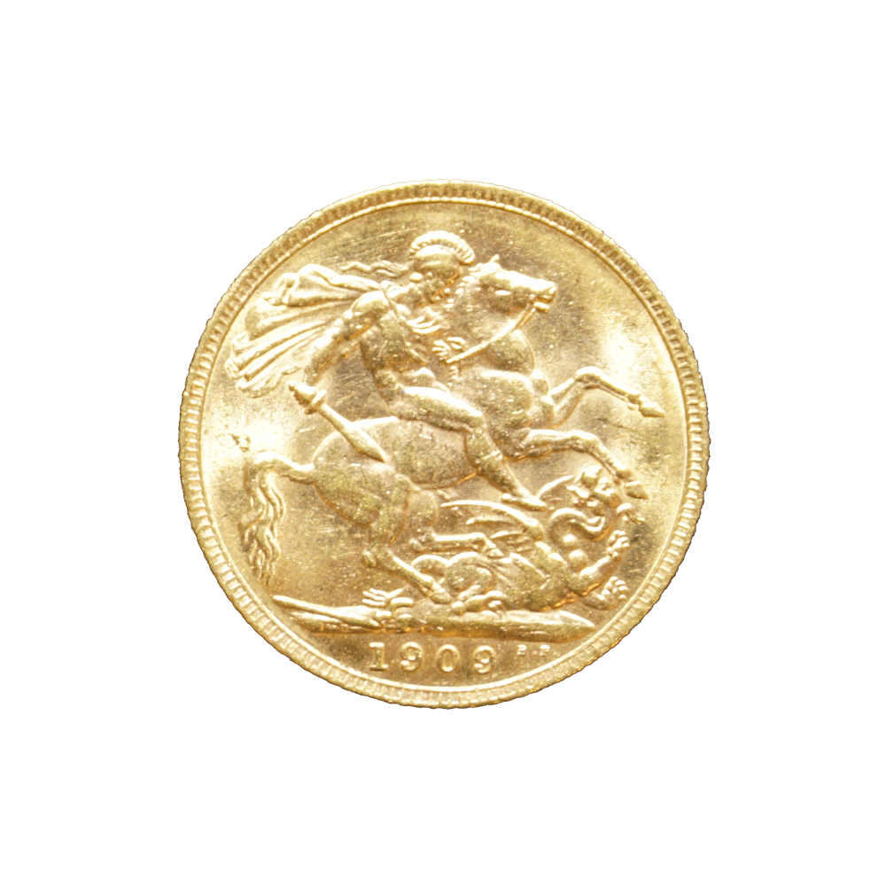 Moeda de ouro de origem inglesa datada de 1909.