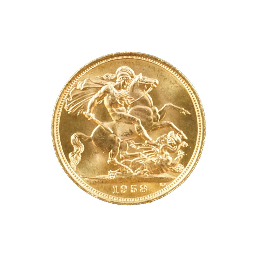 Moeda de ouro original do Reino Unido datada do ano de 1958.