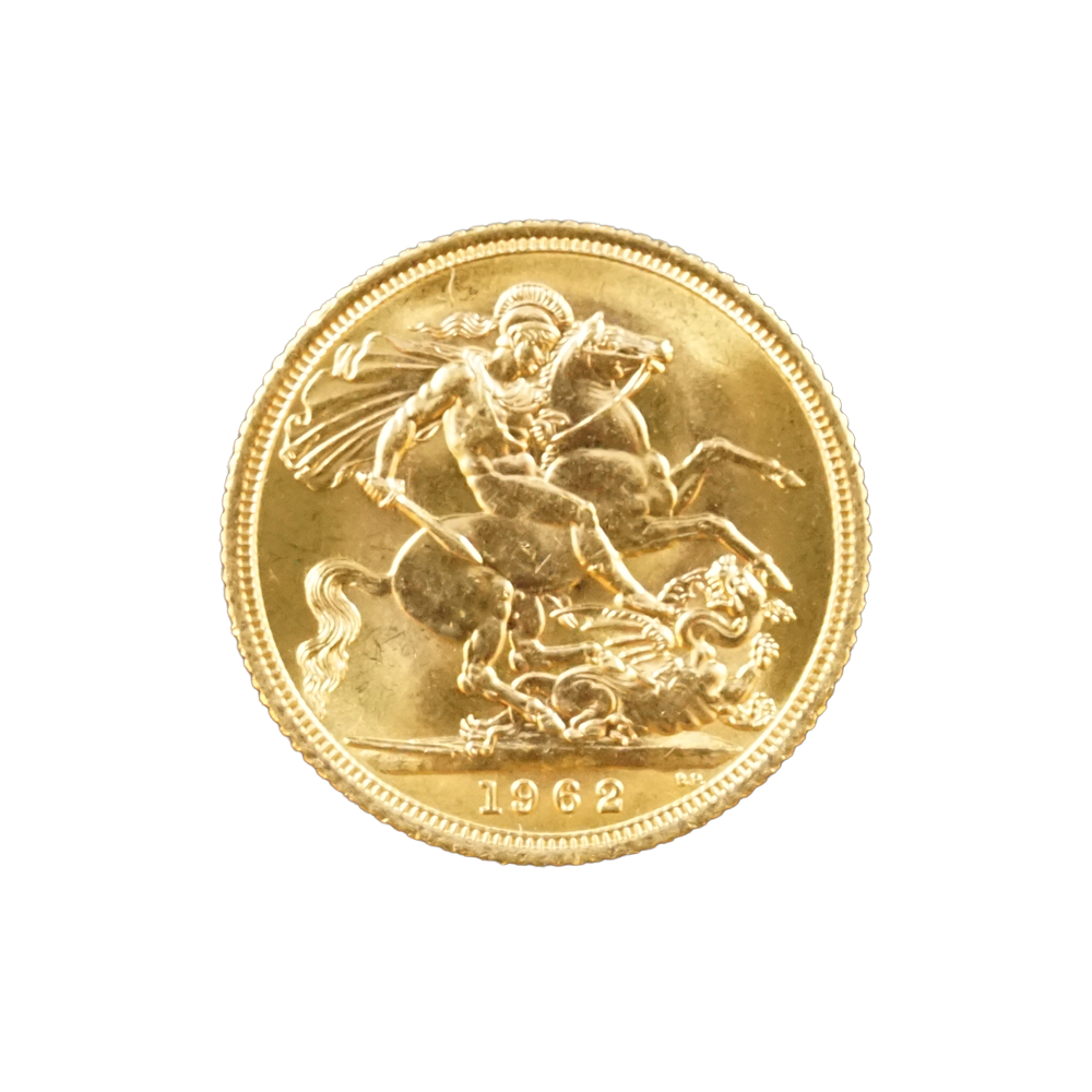 Moeda de ouro original do Reino Unido datada do ano de 1962.