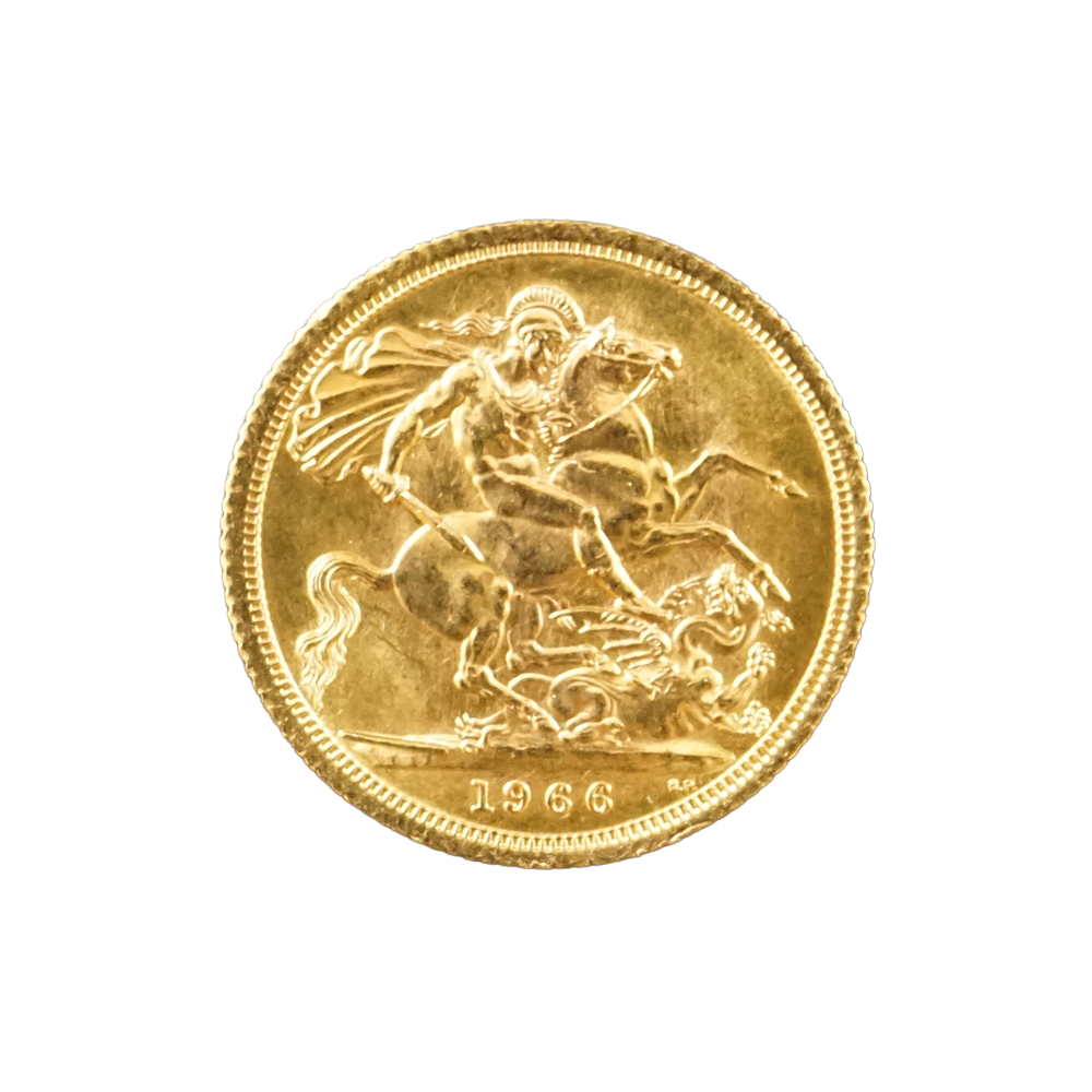 Moeda de ouro original do Reino Unido datada do ano de 1966.
