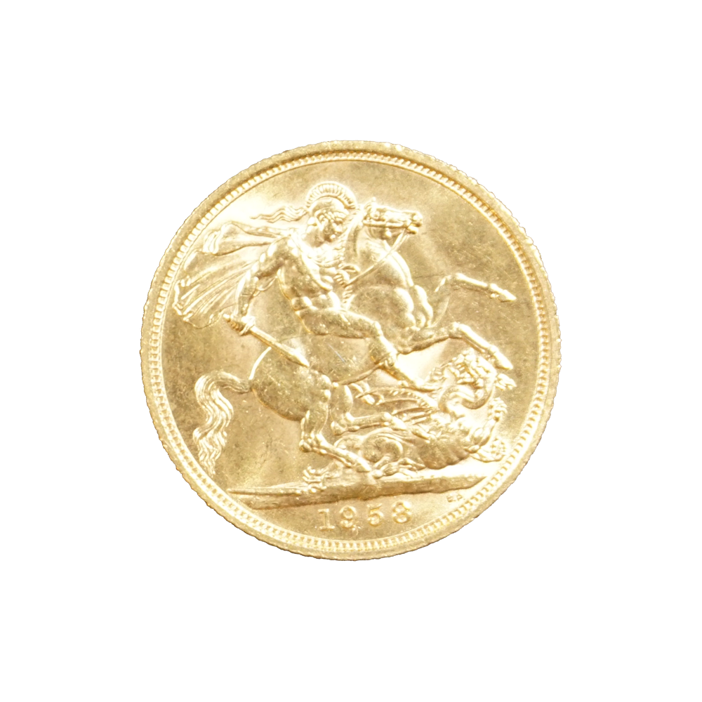 Moeda de ouro original do Reino Unido datada do ano de 1958.
