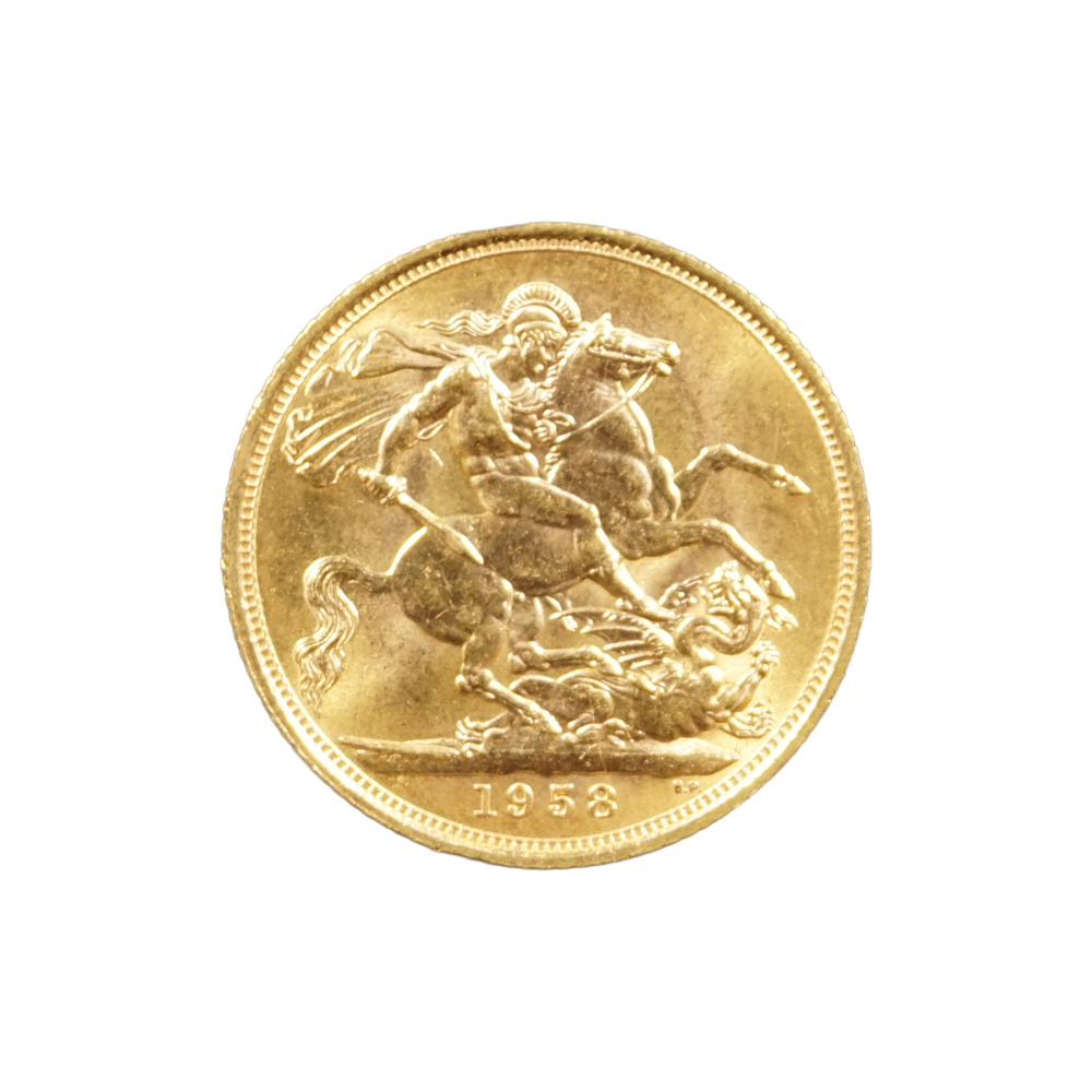 Moeda de ouro original do Reino Unido datada do ano de 1958.