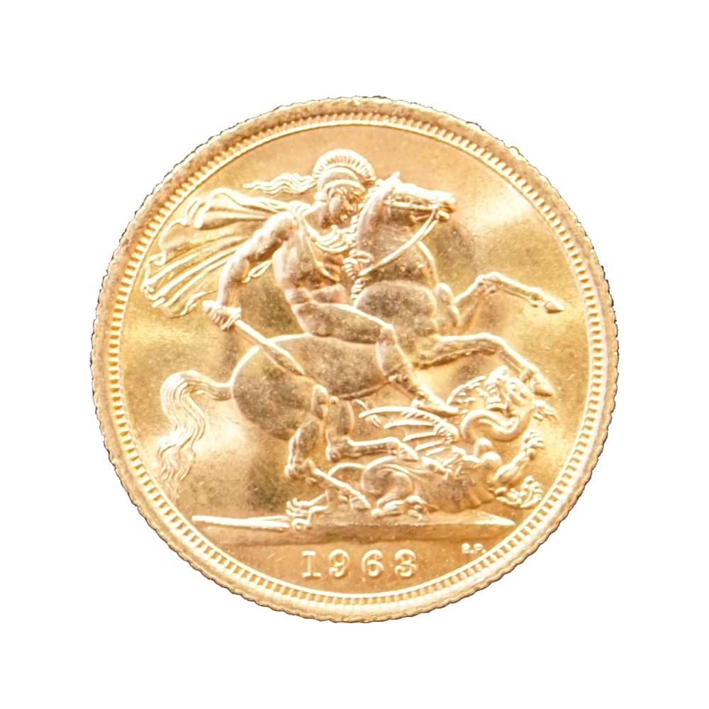 Moeda de ouro original do Reino Unido datada do ano de 1963.