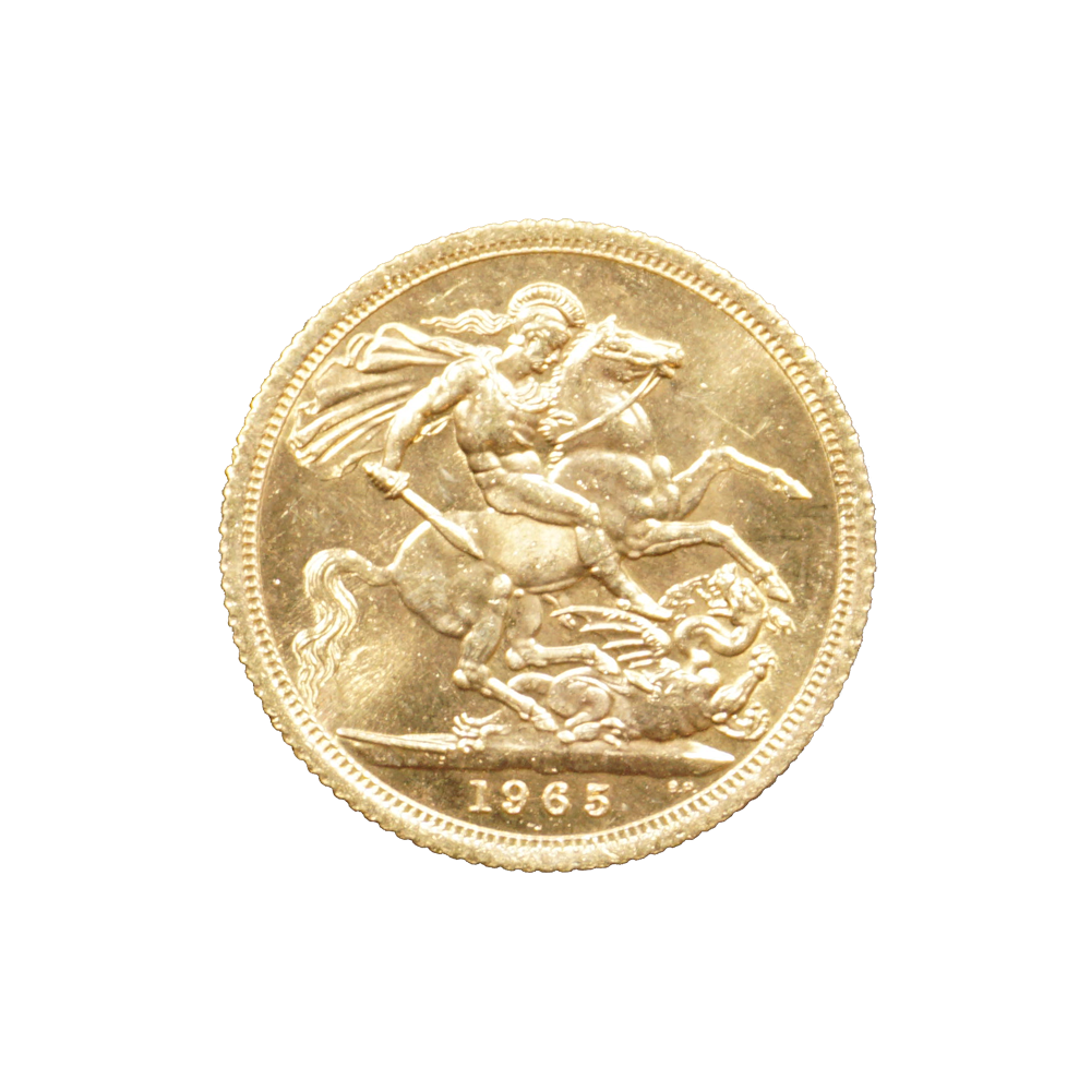 Moeda de ouro original do Reino Unido datada do ano de 1965.