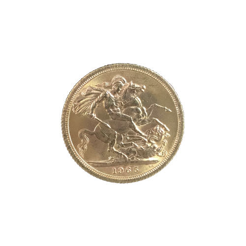 Moeda de ouro original do Reino Unido datada do ano de 1965.
