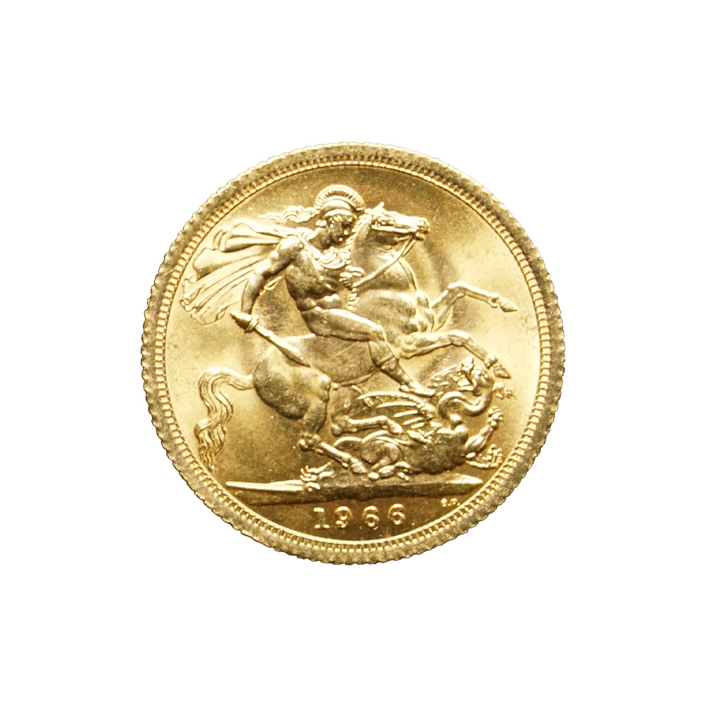 Moeda de ouro original do Reino Unido datada do ano de 1966.
