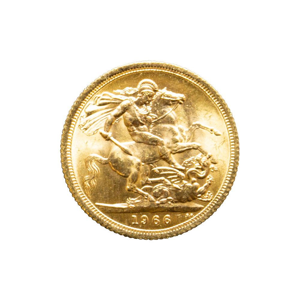 Moeda de ouro original do Reino Unido datada do ano de 1966.