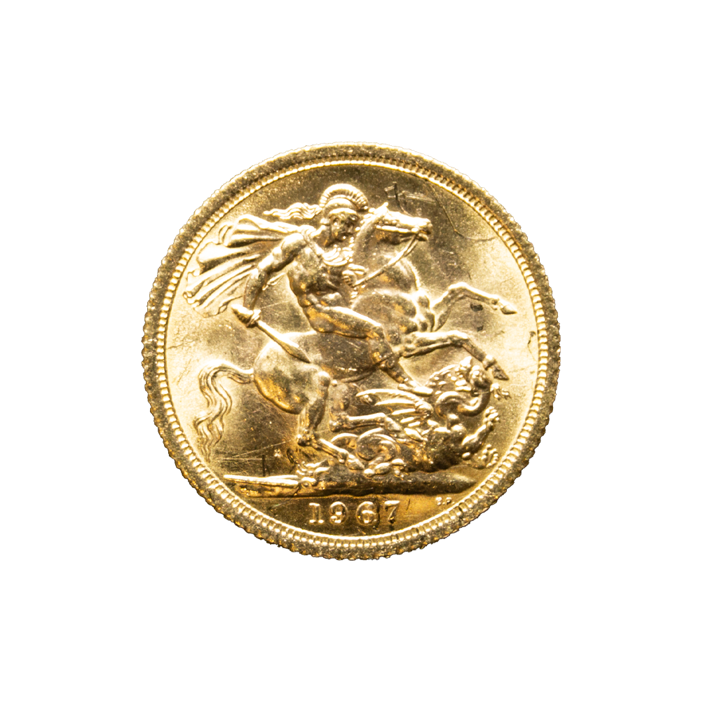 Moeda de ouro original do Reino Unido datada do ano de 1967.