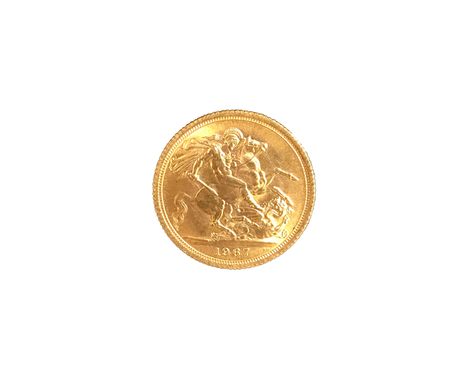 Moeda de ouro original do Reino Unido datada do ano de 1967.
