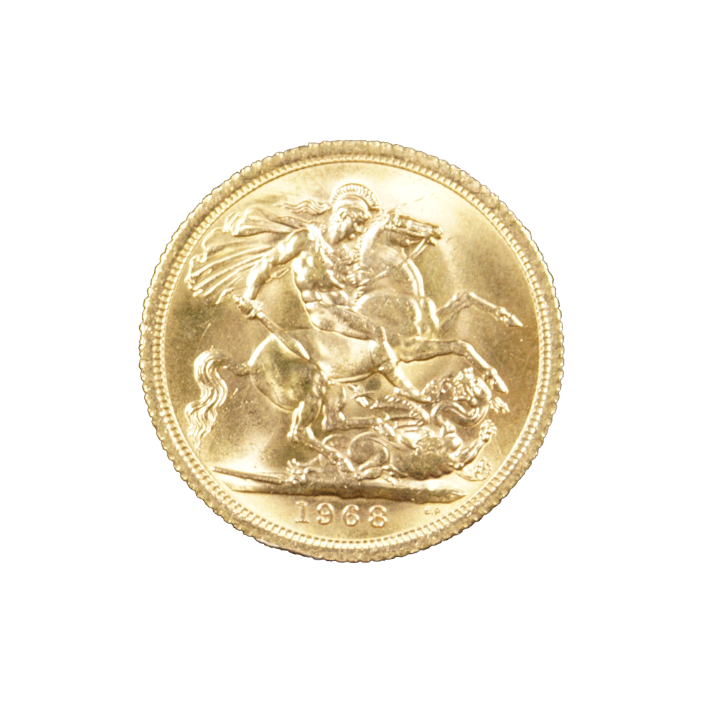 Moeda de ouro original do Reino Unido datada do ano de 1968.