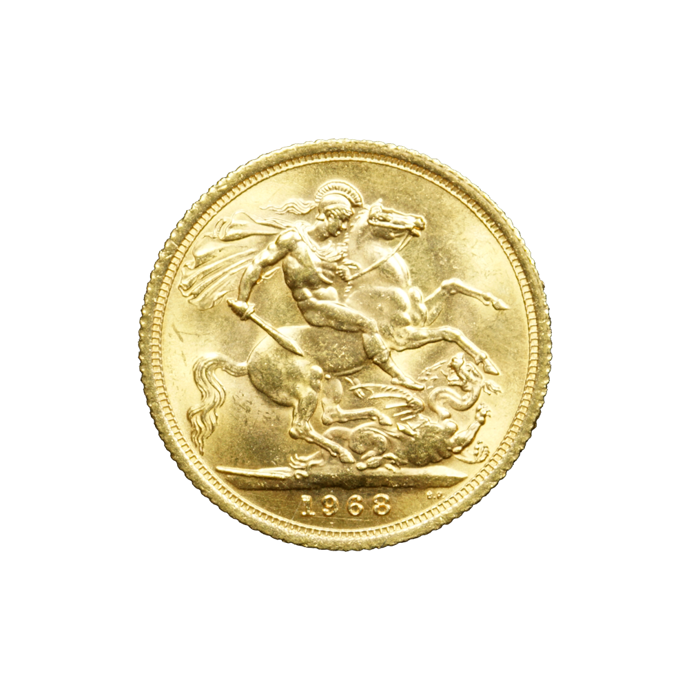 Moeda de ouro original do Reino Unido datada do ano de 1968.