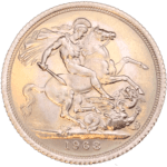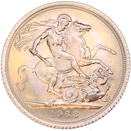 Moeda de ouro original do Reino Unido datada do ano de 1968.