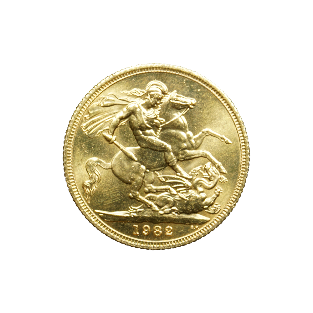 Moeda de ouro original do Reino Unido datada do ano de 1982.