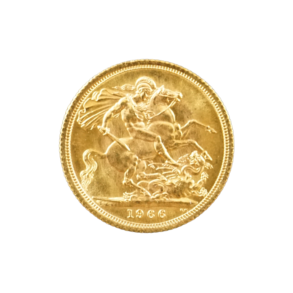 Moeda de ouro original do Reino Unido datada do ano de 1966.