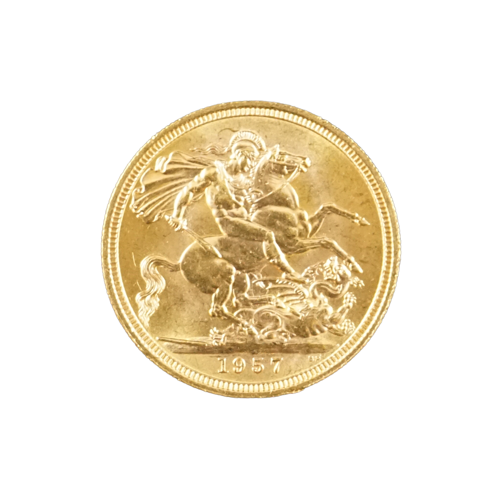 Moeda de ouro original do Reino Unido datada do ano de 1957.