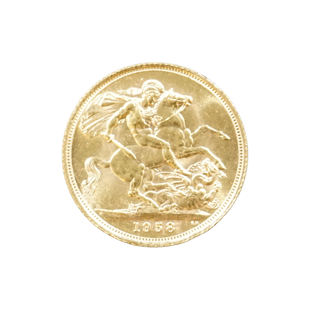 Moeda de ouro original do Reino Unido datada do ano de 1958.