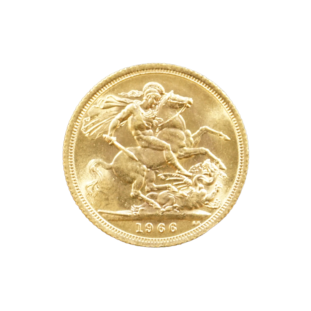 Moeda de ouro original do Reino Unido datada do ano de 1966.
