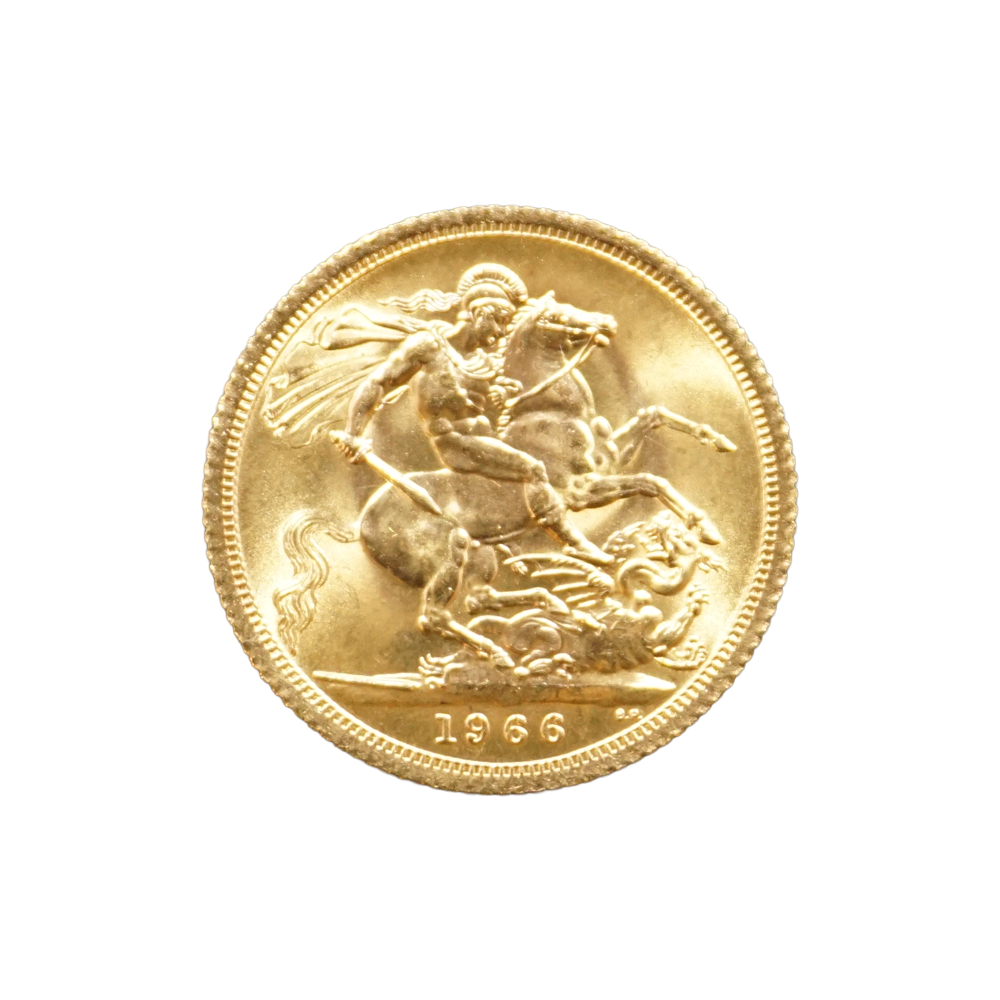 Moeda de ouro original do Reino Unido datada do ano de 1966.