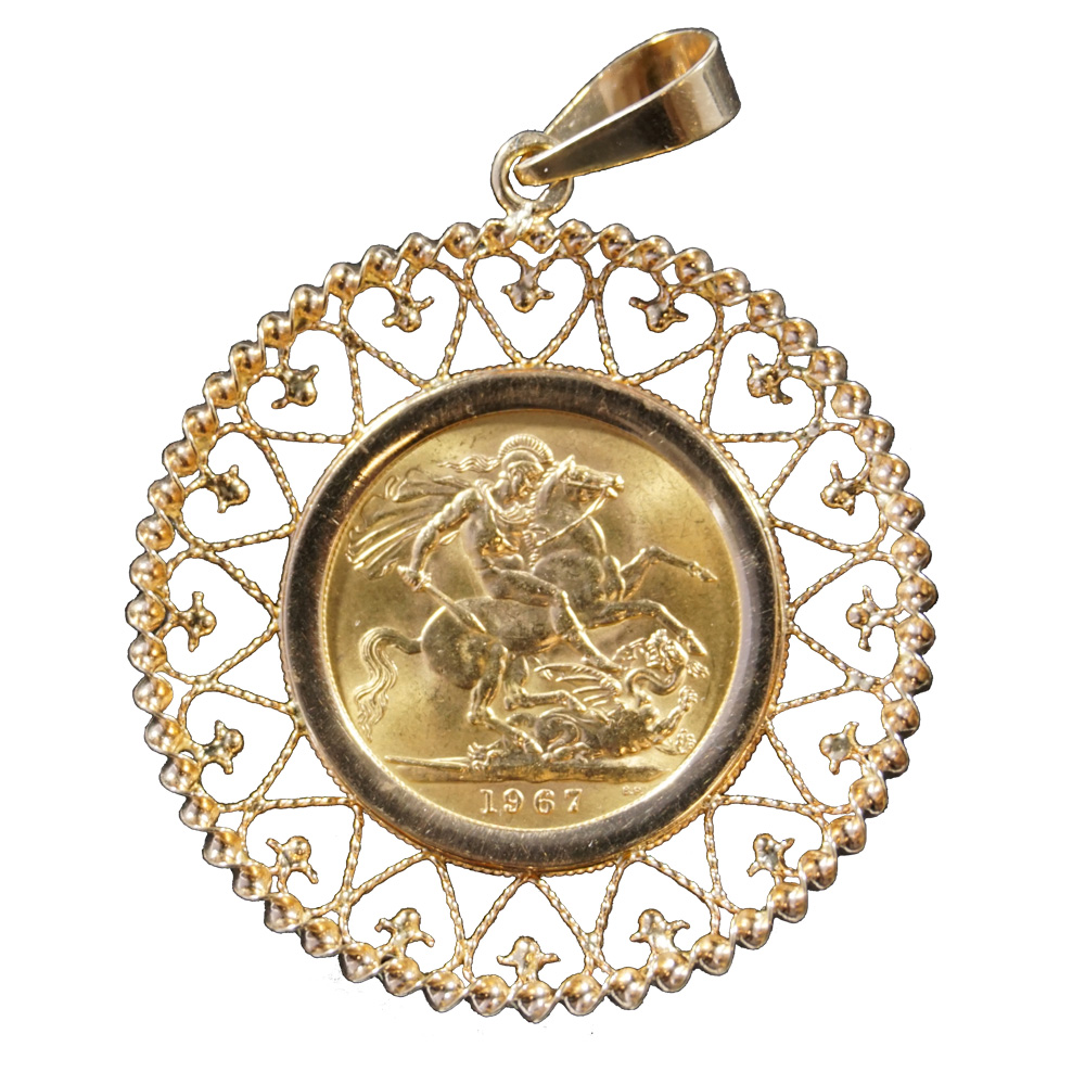 Moeda de ouro original do Reino Unido datada do ano de 1967.