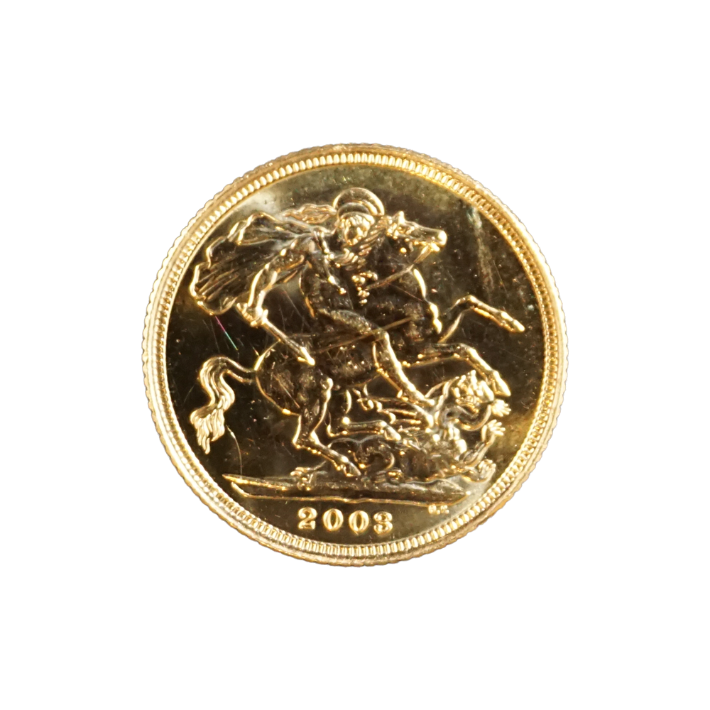 Moeda de ouro original do Reino Unido datada do ano de 2003.