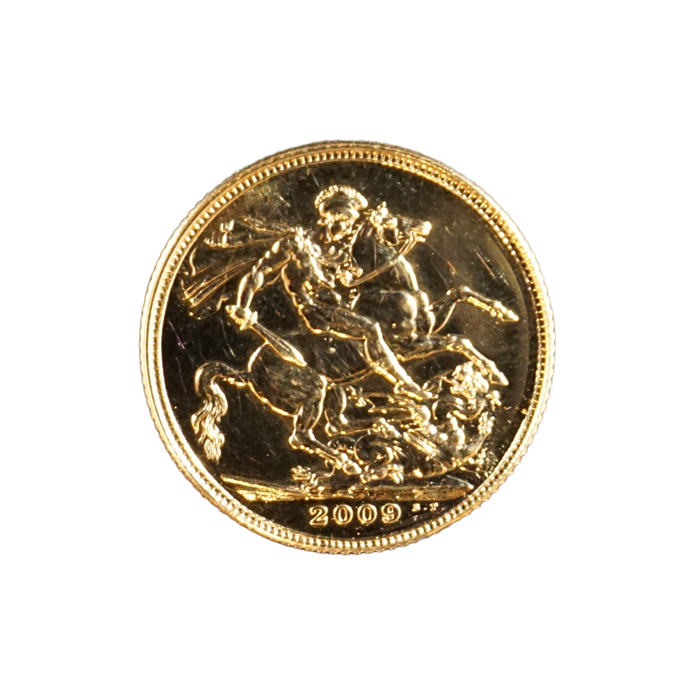 Moeda de ouro original do Reino Unido datada do ano de 2009.