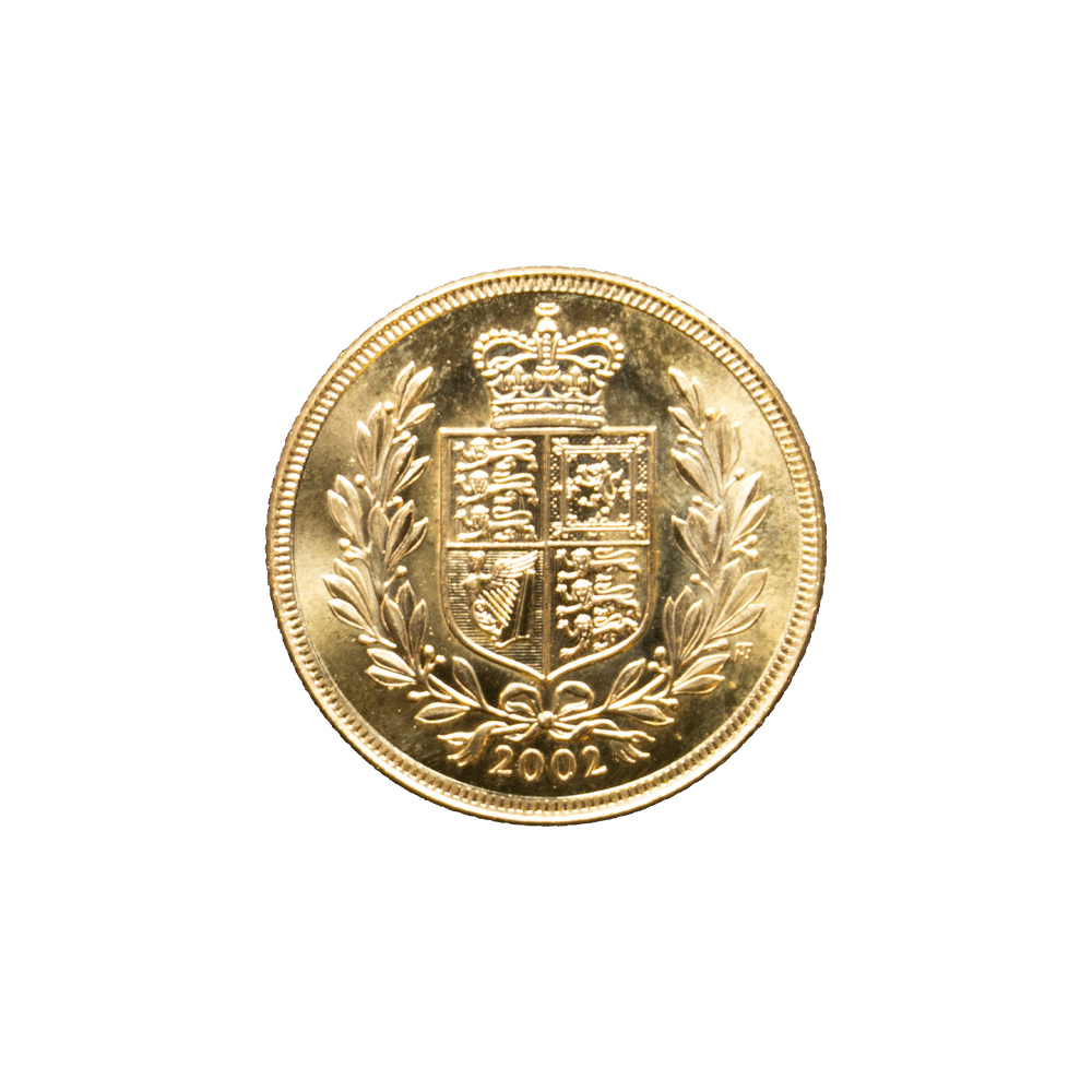 Moeda de ouro original do Reino Unido datada do ano de 2002.