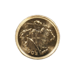 Moeda de ouro original do Reino Unido datada do ano de 2005.