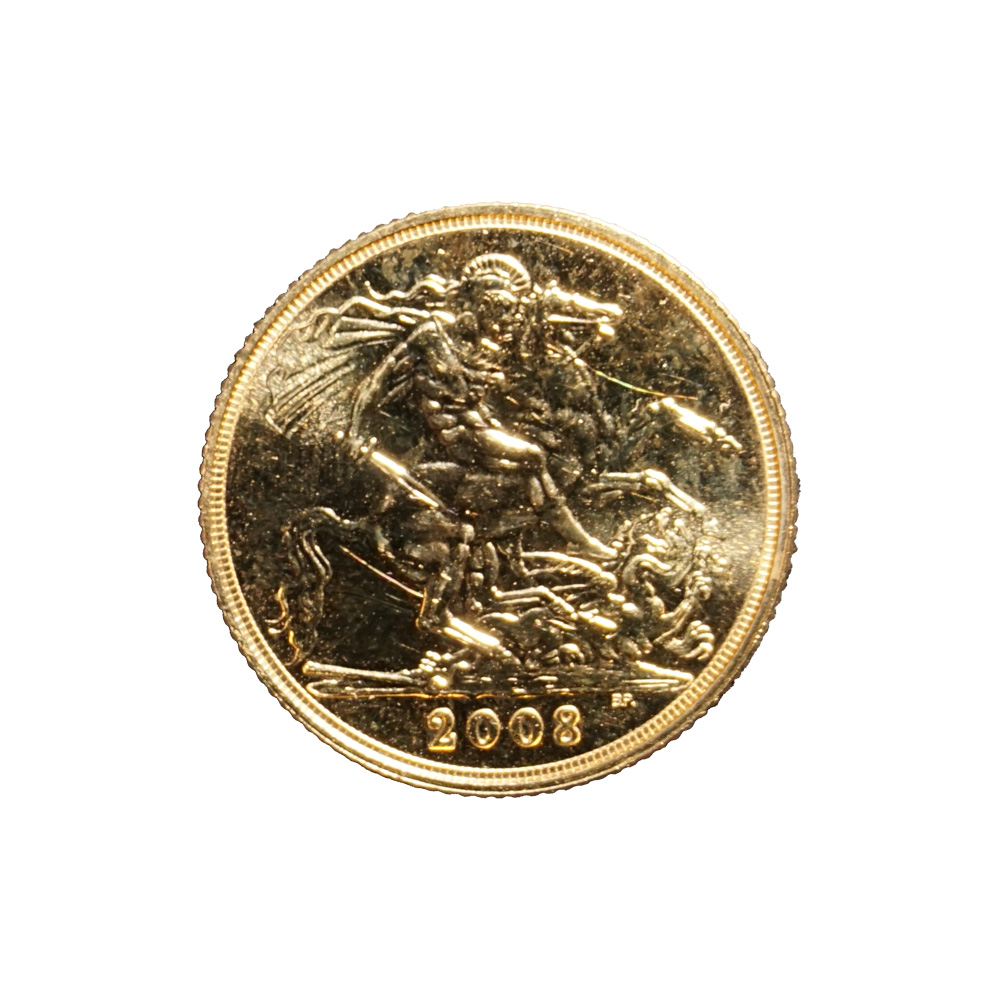 Moeda de ouro original do Reino Unido datada do ano de 2008.
