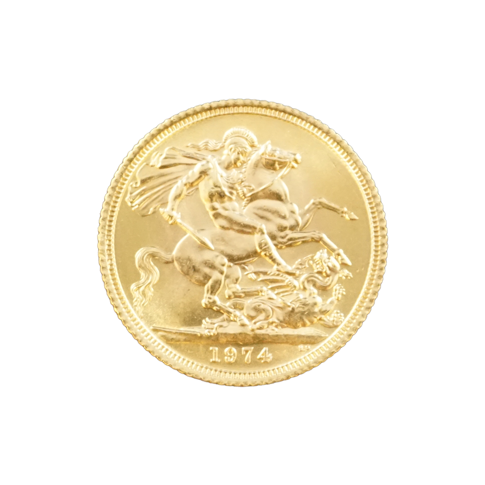 Moeda de ouro original do Reino Unido datada do ano de 1974.
