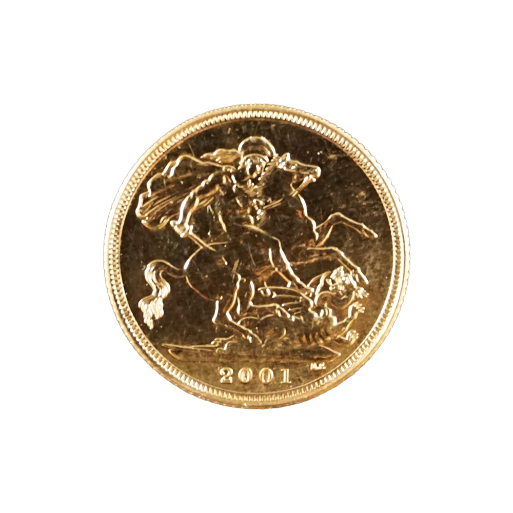 Moeda de ouro original do Reino Unido datada do ano de 2001.