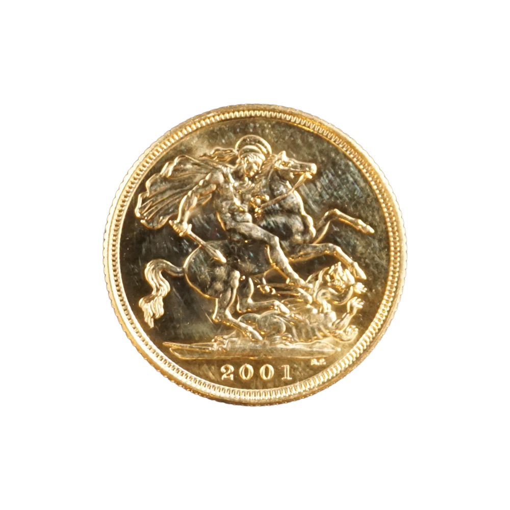 Moeda de ouro original do Reino Unido datada do ano de 2001.