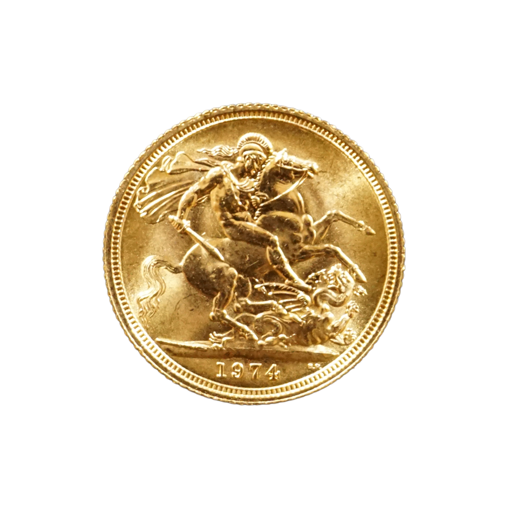Moeda de ouro original do Reino Unido datada do ano de 1974.