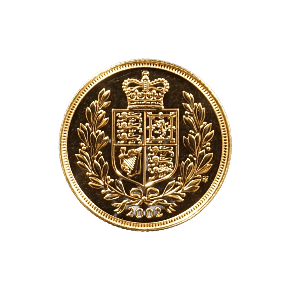 Moeda de ouro original do Reino Unido datada do ano de 2002.