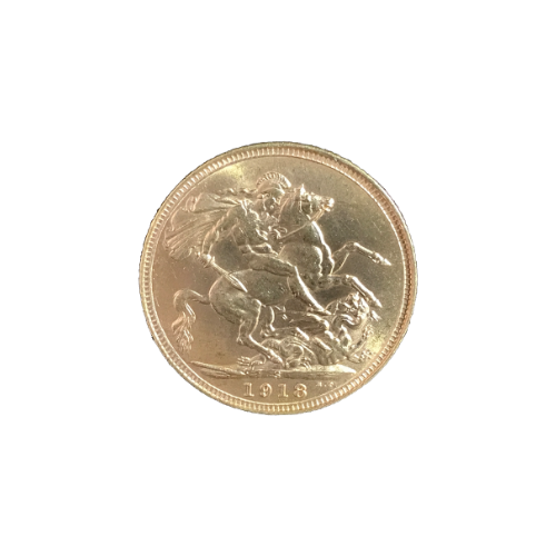 Moeda de ouro original do Reino Unido datada do ano de 1918.