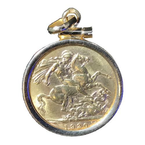 Moeda de ouro original do Reino Unido datada do ano de 1920.