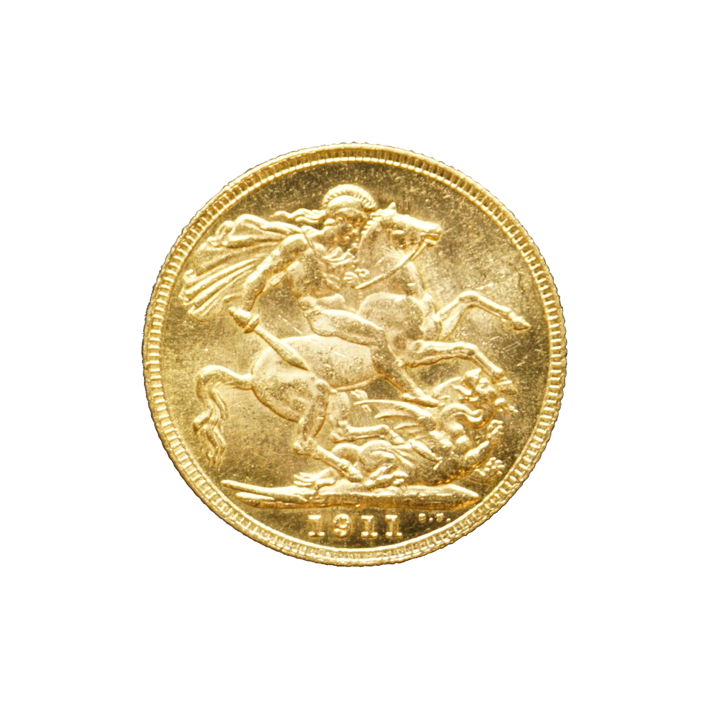 Moeda de ouro original do Reino Unido datada do ano de 1911.