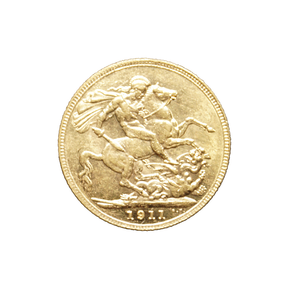 Moeda de ouro original do Reino Unido datada do ano de 1911.