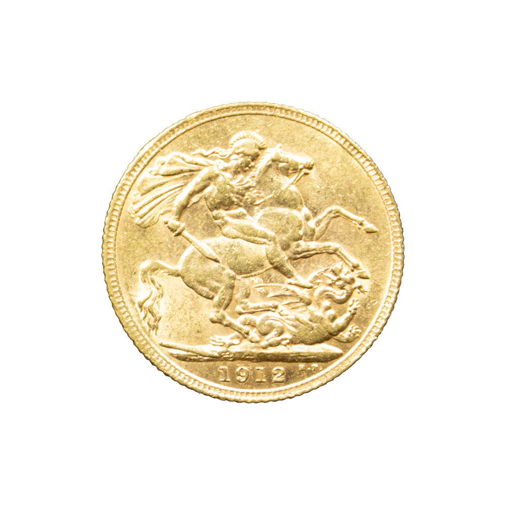 Moeda de ouro original do Reino Unido datada do ano de 1912.