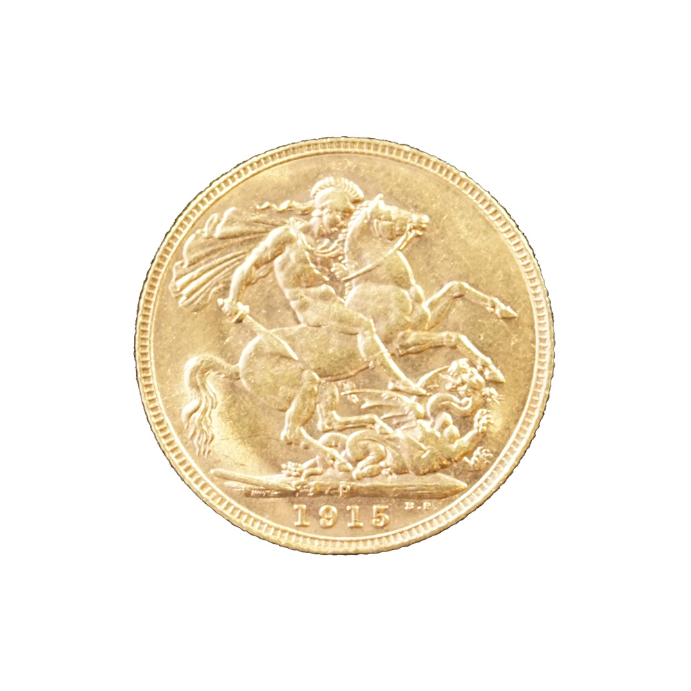 Moeda de ouro original do Reino Unido datada do ano de 1915.