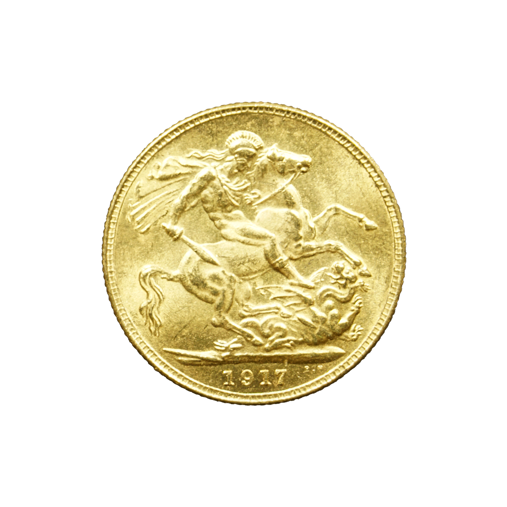 Moeda de ouro original do Reino Unido datada do ano de 1917.