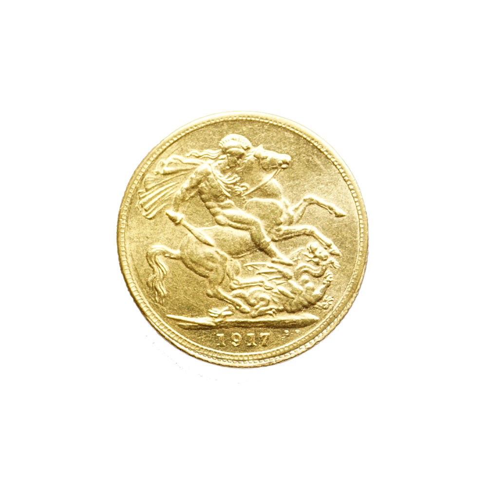 Moeda de ouro original do Reino Unido datada do ano de 1917.