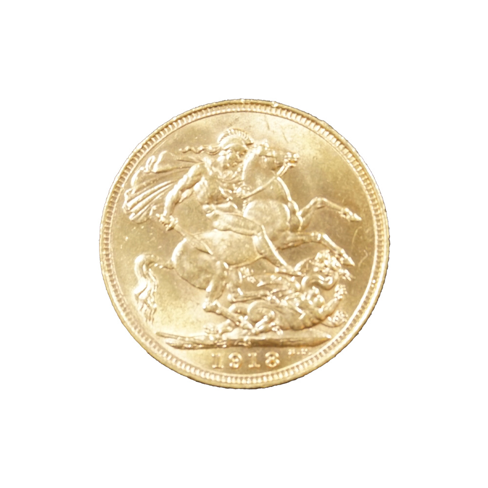 Moeda de ouro original do Reino Unido datada do ano de 1918.