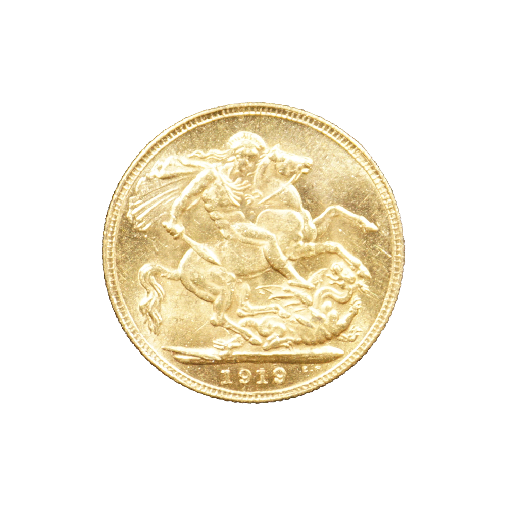 Moeda de ouro original do Reino Unido datada do ano de 1919.