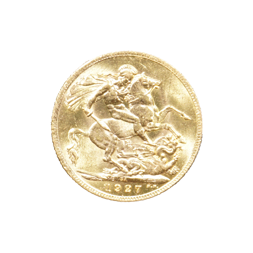 Moeda de ouro original do Reino Unido datada do ano de 1927.