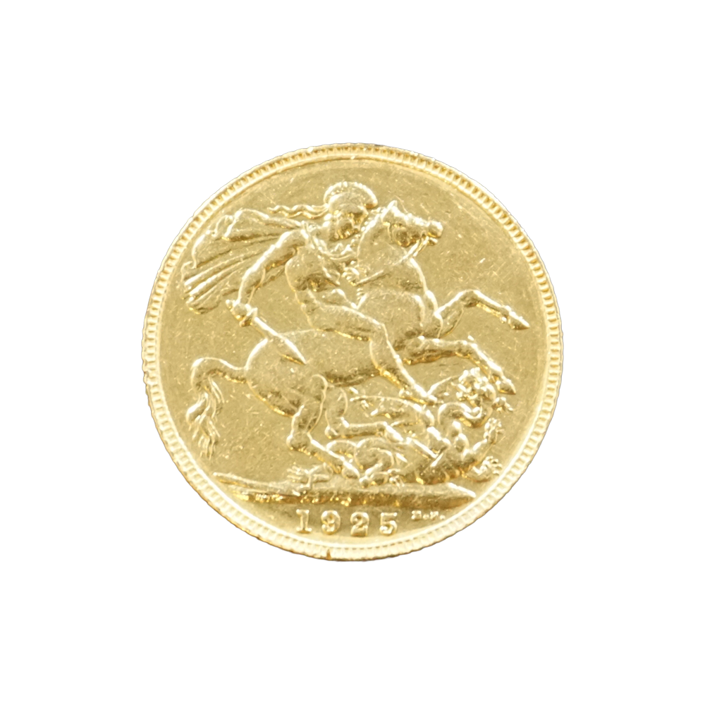 Moeda de ouro original do Reino Unido datada do ano de 1925.