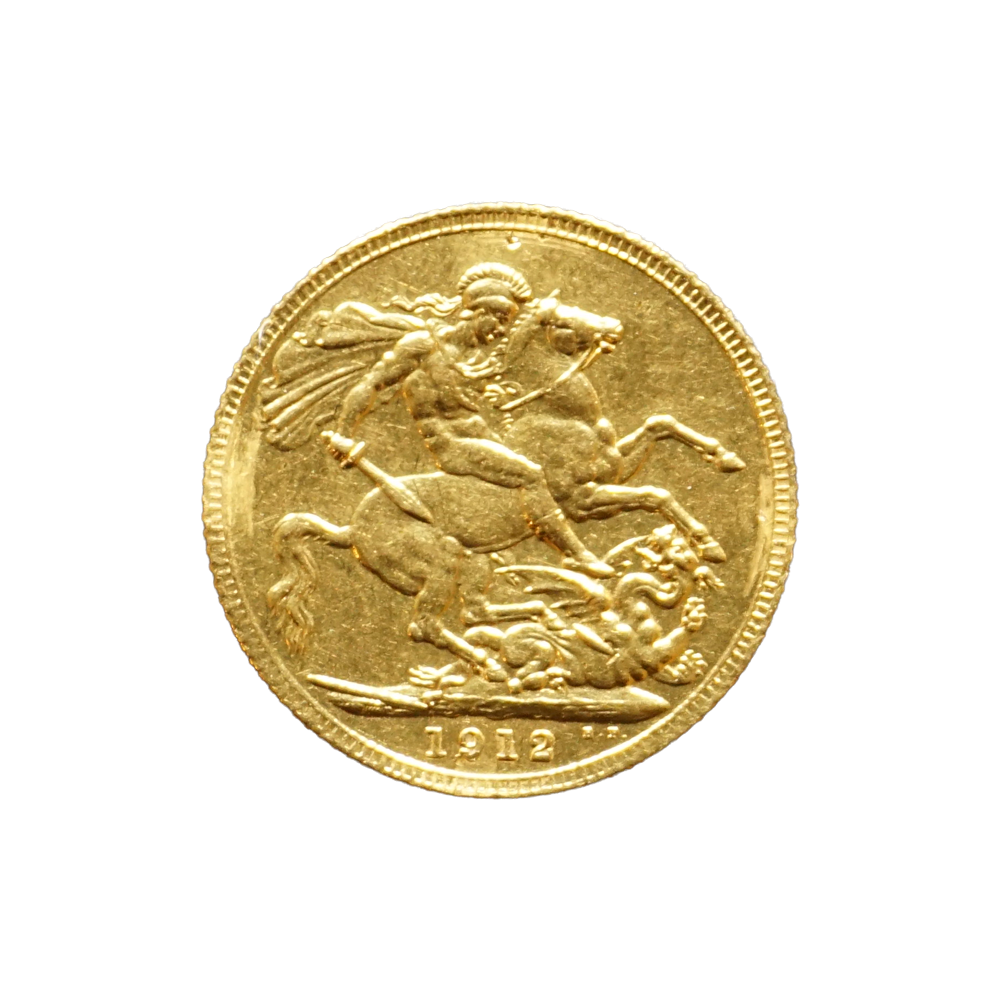 Moeda de ouro original do Reino Unido datada do ano de 1912.