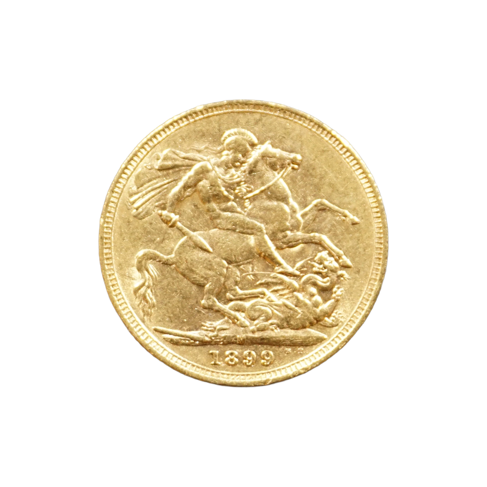 Moeda de ouro original do Reino Unido datada do ano de 1899.